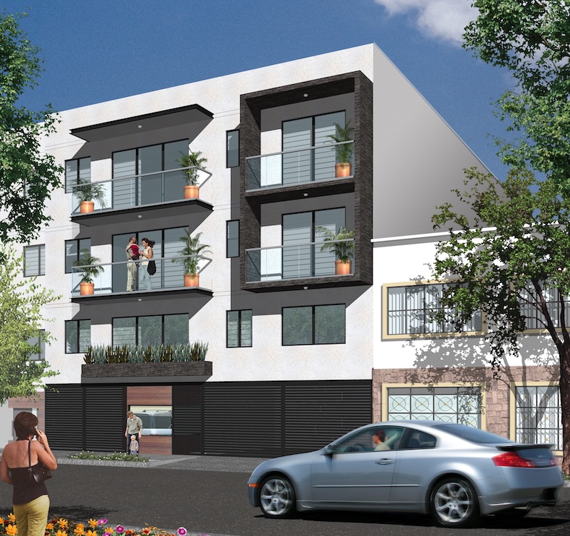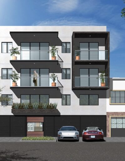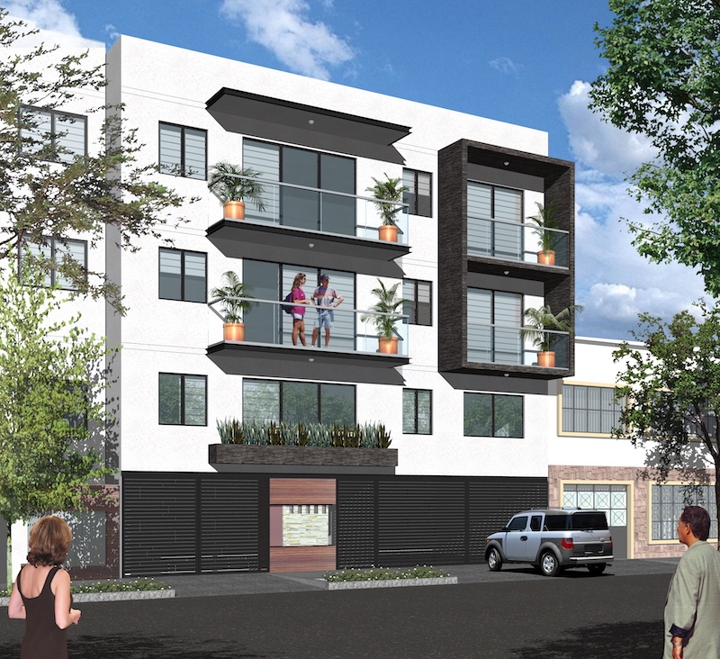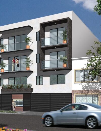 Edificio habitacional con plata baja y 3 pisos.