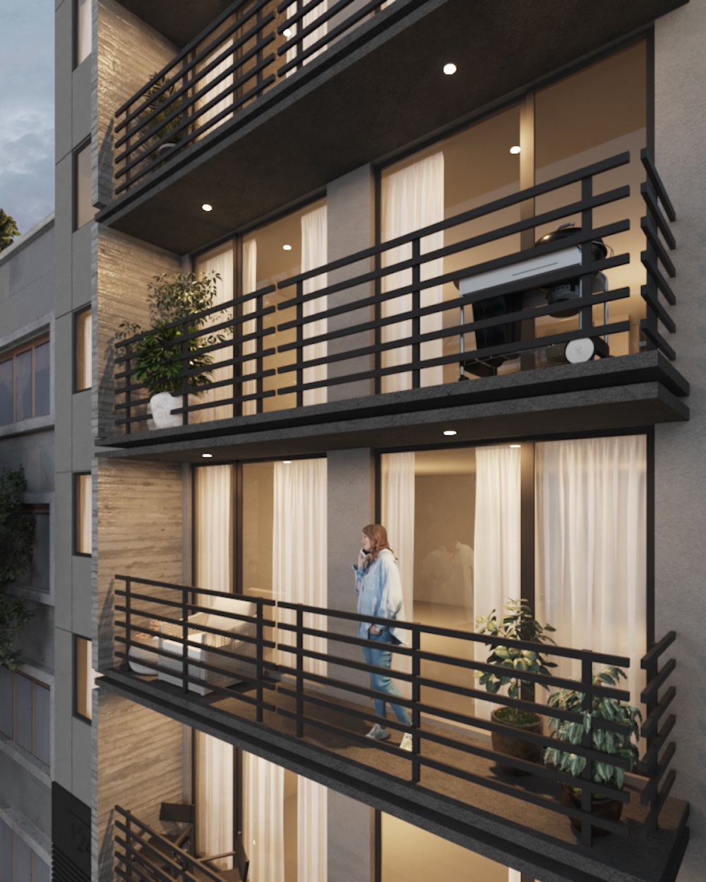 Edificio habitacional con 4 niveles y planta baja.